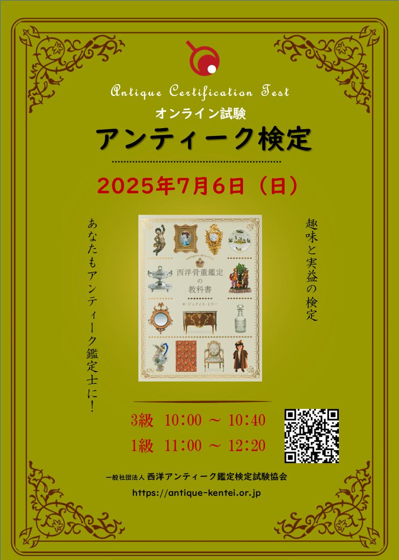 2025年7月に実施された第15回アンティーク検定試験・3級の問題・解答です。